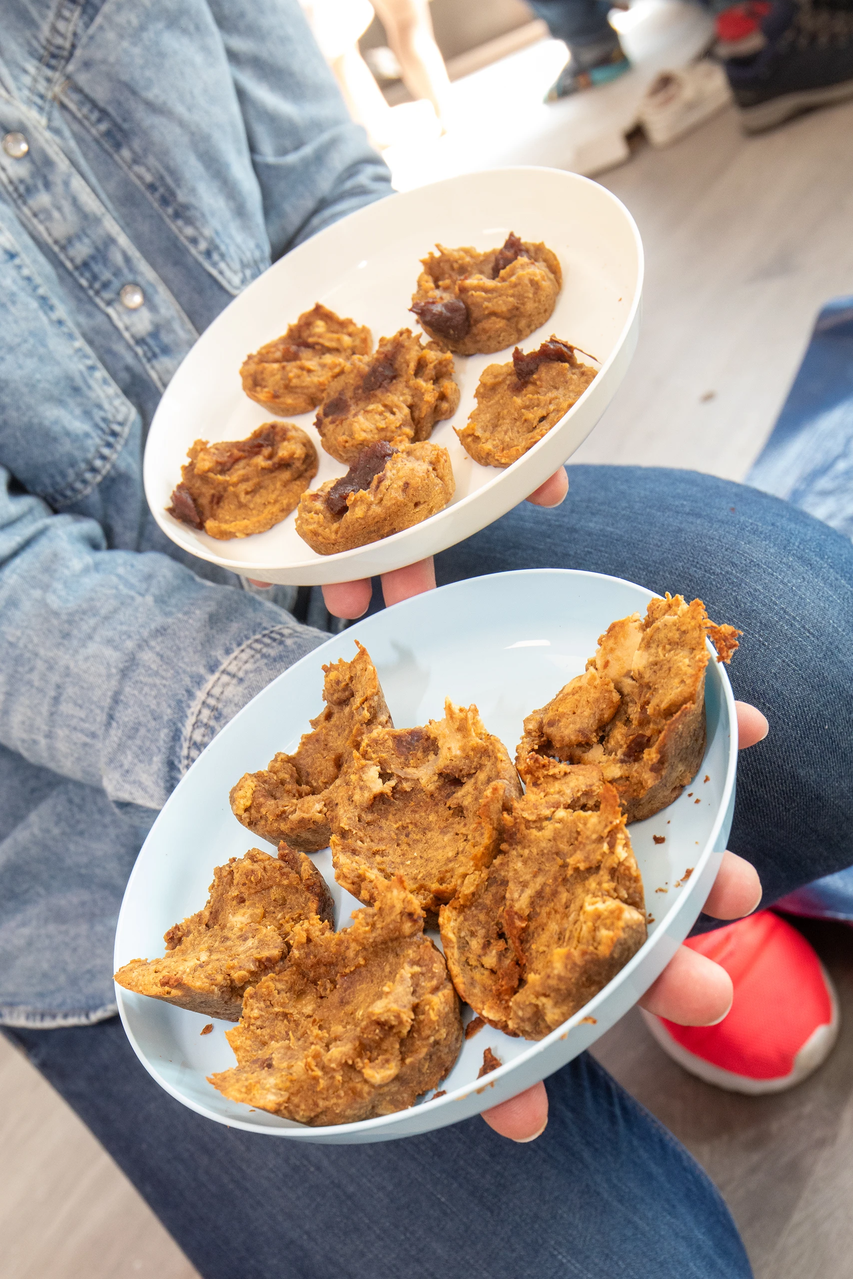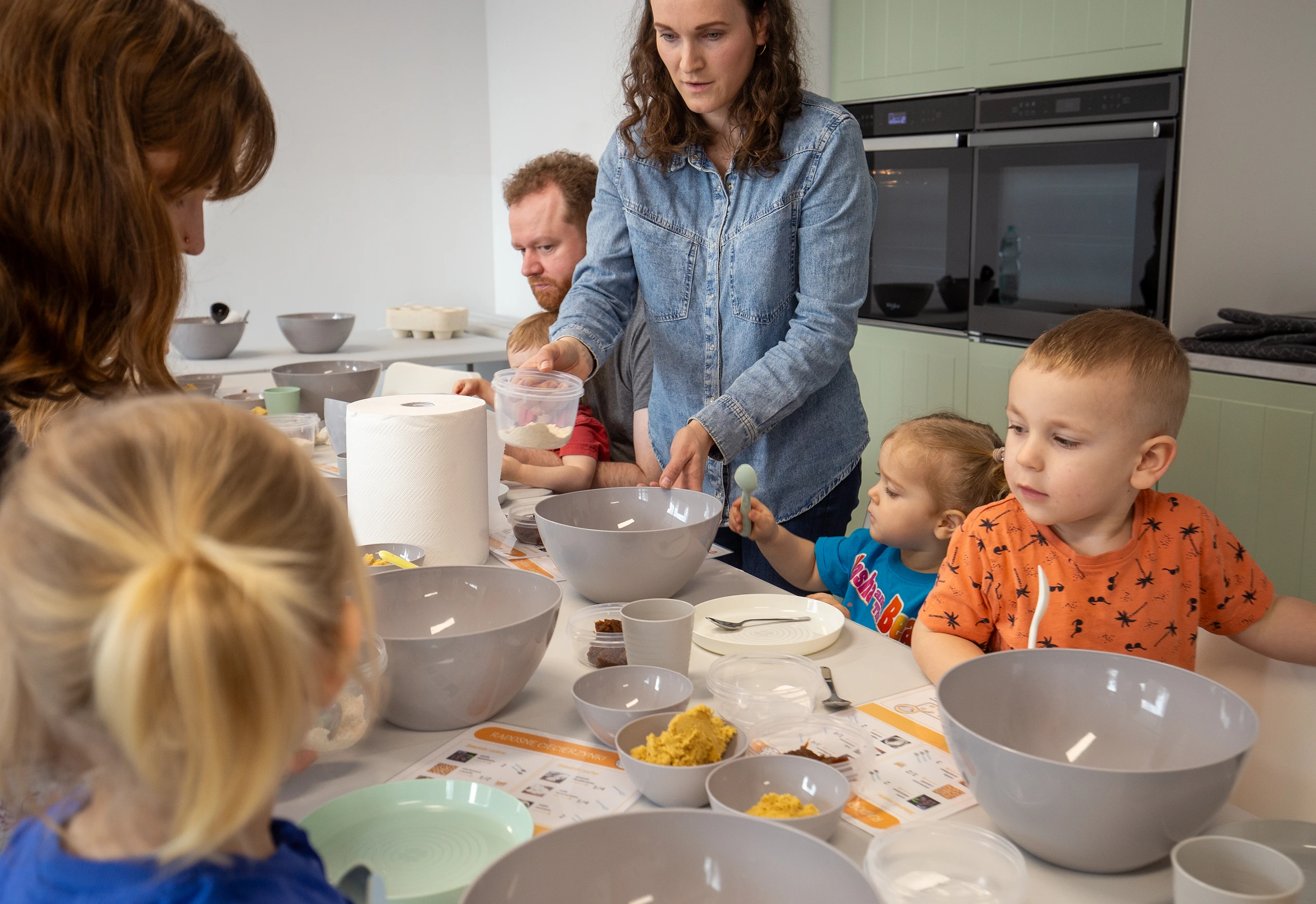 Dzieci podjadają różne składniki w trakcie i o to w tym chodzi, dlatego też nie należy łasuchom przeszkadzać. Pracujemy wyłącznie na naturalnych składnikach, pełnych witamin i minerałów i nie ma znaczenia, czy dziecko spróbuje ich na surowo czy w gotowym wypieku.
